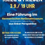 KRIEG & FRIEDEN Eine Führung im Germanischen Nationalmuseum aus linker Perspektive Beitrag von 10 Euro (Einnahmen werden nach Gaza gespendet) Anmeldung ist notwendig: museummitlinks@posteo.de