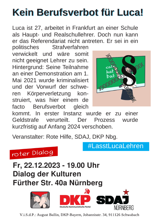 Veranstalter: Rote Hilfe, SDAJ, DKP Nbg.