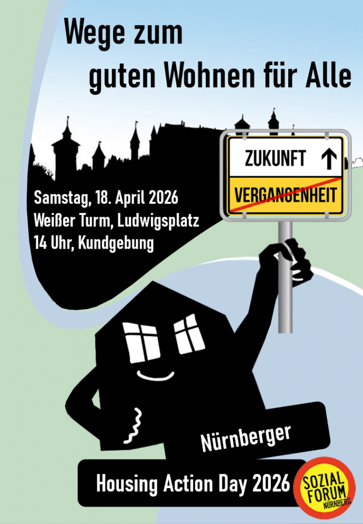 Wege zum guten Wohnen für Alle DKP-Nürnberg Veröffentlicht am März 7, 2026 von E429zMärz 7, 2026 Datum, Uhrzeit: 18.04.2026 14:00 Ort: Weißer Turm Samstag 18.April 14 Uhr Kundgebung Weißer Turm, Ludwigsplatz Housing Action Day 2026